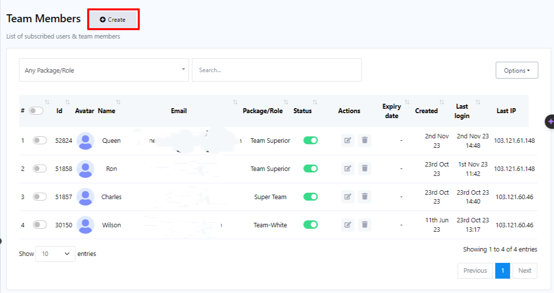 On our platform, a team member is more than just a user.They are specialized individuals with access to a variety of features such as live chat and subscriber management. This role is particularly useful when you have a large number of registered users and need assistance with managing their data or other user-related tasks.